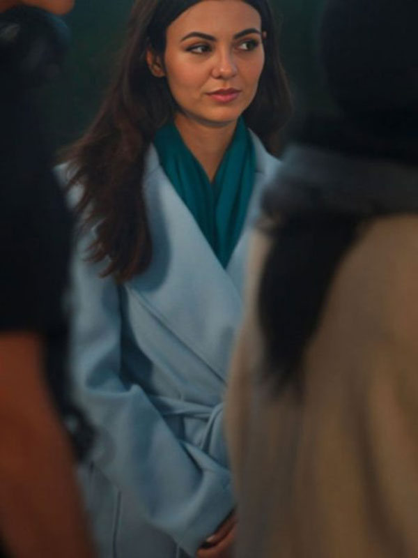 Depravity 2024 Victoria Justice Blue Wool Coat
