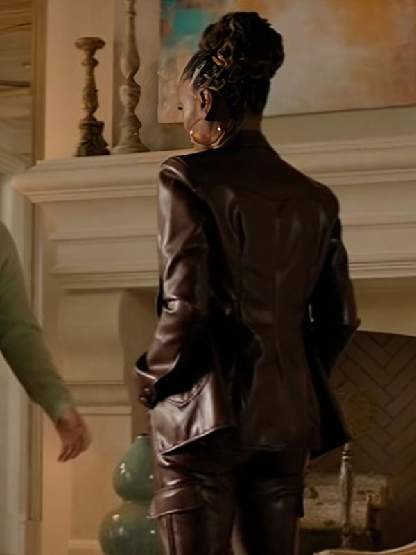 The brown leather blazer is absolute perfection. This is really a show-stopping color and adds a sophisticated element to my closet.