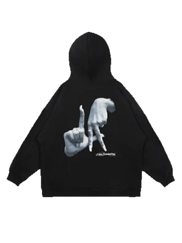 Hand Gesture Oversized Pullover Hoodie