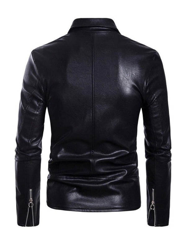 Men’s Black Lapel Style Motorcycle Biker Leather Jacket