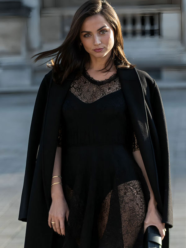 Paris Fashion Week Ana de Armas Black Trench Coat